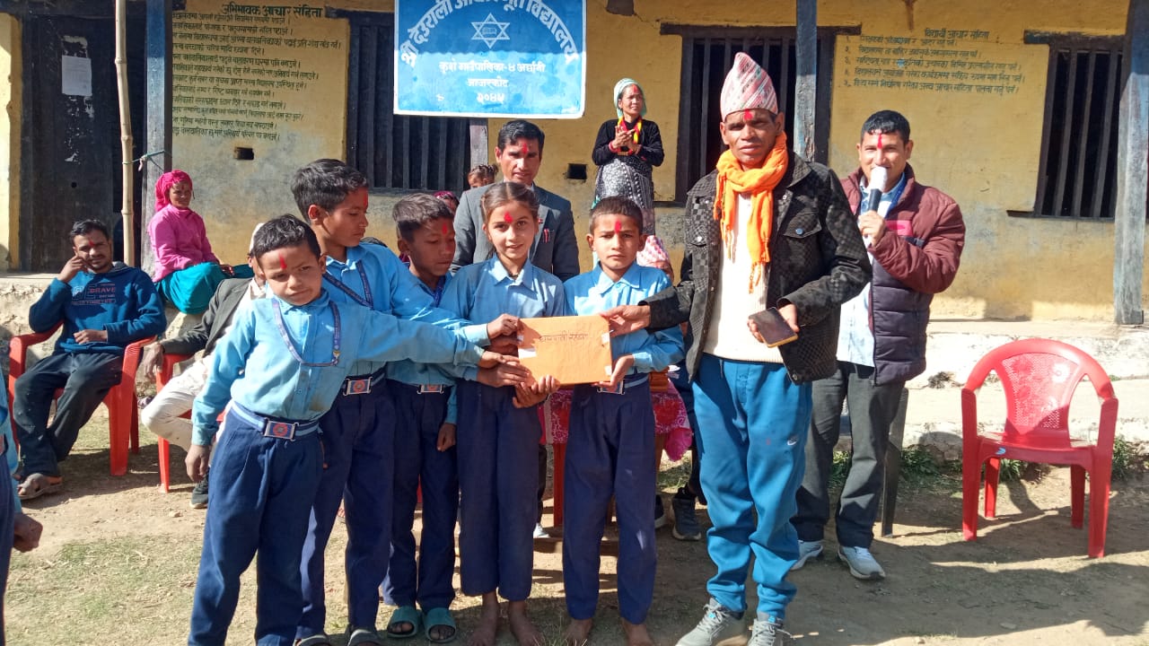 कार्यक्रम शिक्षक श्री प्रमेश्वर शाहको सञ्चालन तथा विद्यालय व्यवस्थापन समिति (वि.व्य.स.) अध्यक्ष श्री दिपकलाल जैसीको अध्यक्षतामा सम्पन्न भएको हो। कार्यक्रममा वडा सदस्य श्री नन्दाराम जैसी, वि.व्य.स. सदस्यहरू, पूर्व अध्यक्षहरू तथा अभिभावकहरूको उल्लेखनीय उपस्थिति रहेको थियो।